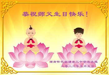 感恩师父的慈悲救度!弟子们一定学好法,修好自己,整体配合做好三件事。 湖南怀化溆浦县学法小组全体大法弟子恭祝师父生日快乐!