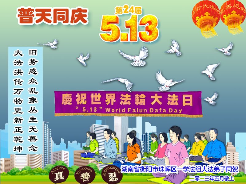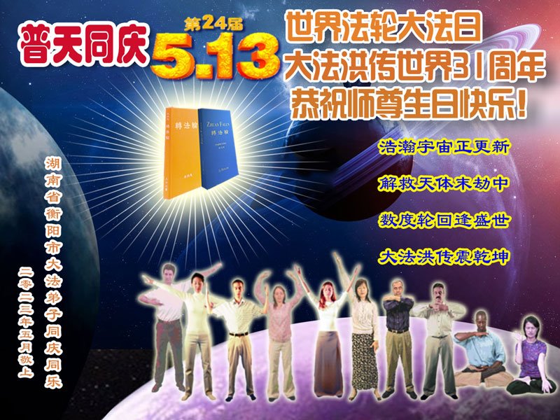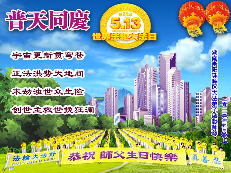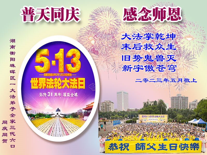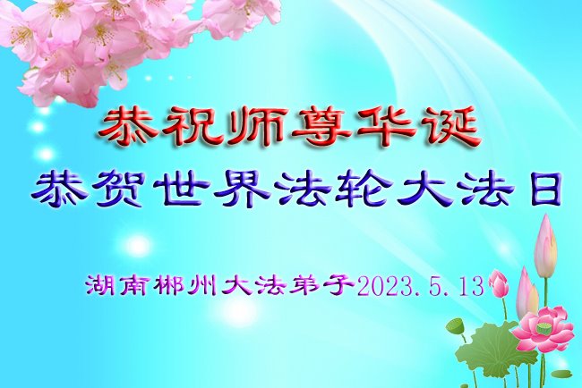 【明慧网二零二三年五月十一日】 湖南省衡阳市大法弟子恭贺世界法轮大法日!