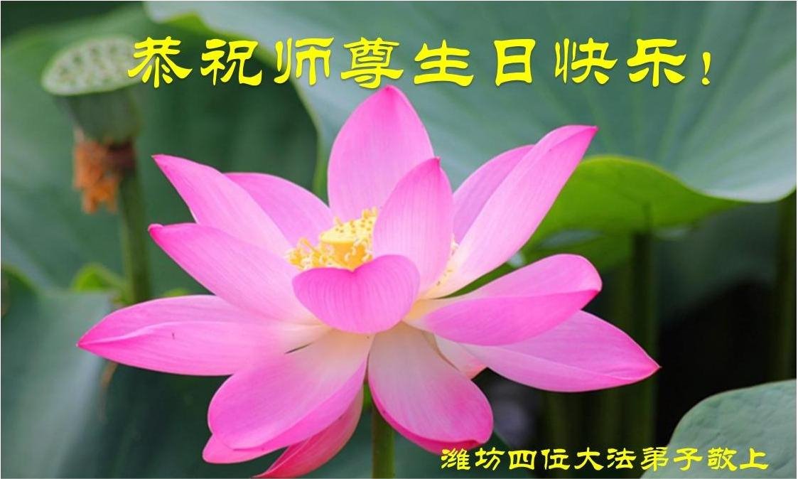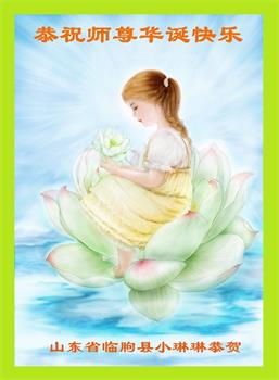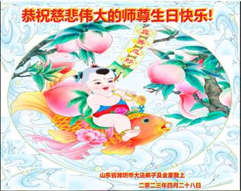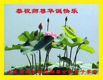 山东省潍坊市大法弟子及全家恭祝慈悲伟大的师尊生日快乐!