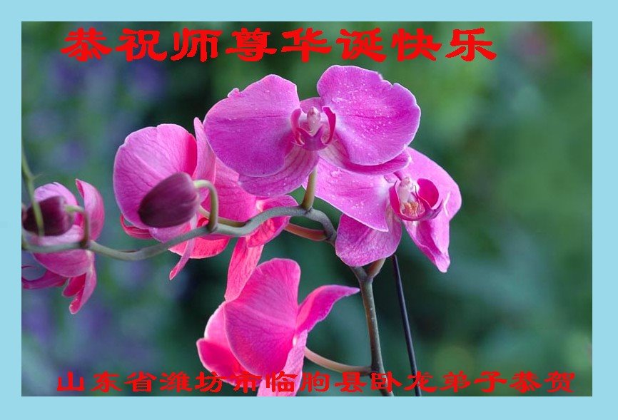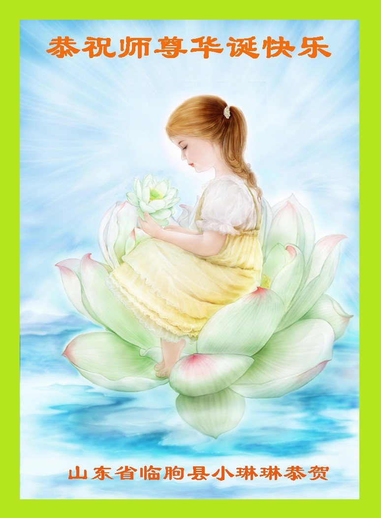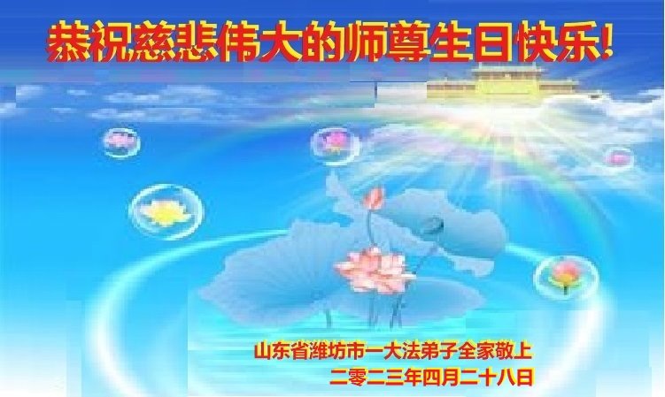 山东省潍坊市一大法弟子全家恭祝慈悲伟大的师尊生日快乐!