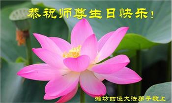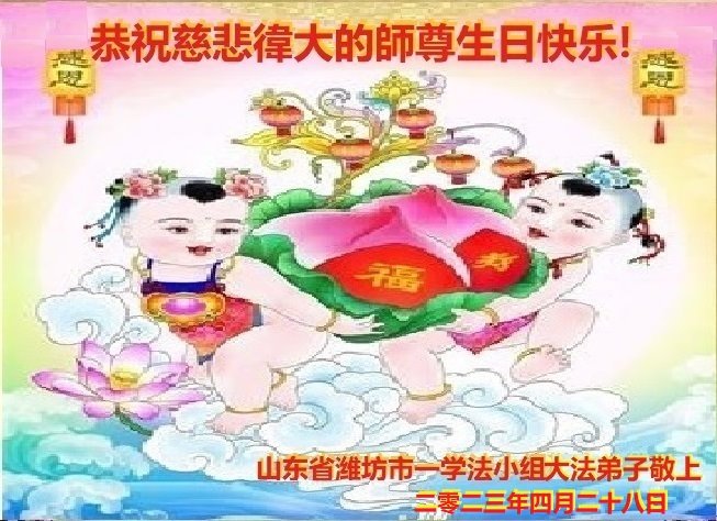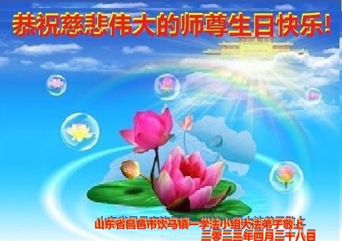 山东省潍坊市一学法小组大法弟子恭祝慈悲伟大的师尊生日快乐!