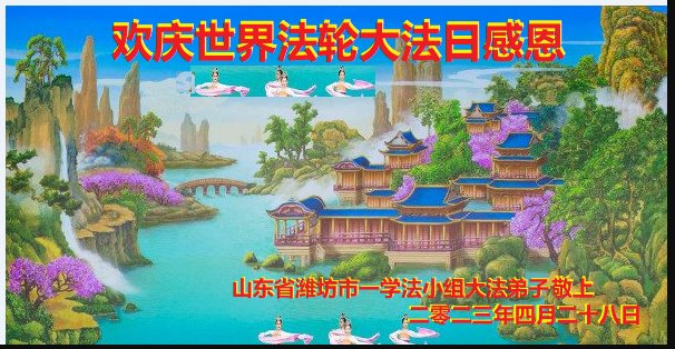 【明慧网二零二三年五月十一日】 山东省潍坊市临朐县全体大法弟子恭祝慈悲伟大的师尊华诞暨世界法轮大法日!