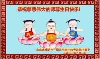 山东省潍坊市一学法小组三位大法弟子恭祝慈悲伟大的师尊生日快乐!