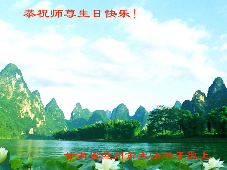 甘肃省兰州市大法弟子恭祝慈悲伟大的师尊生日快乐!