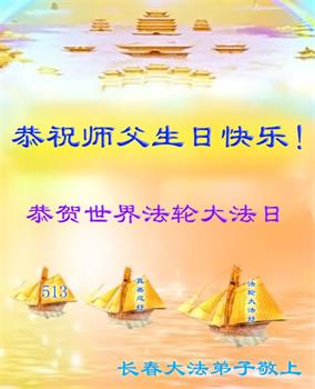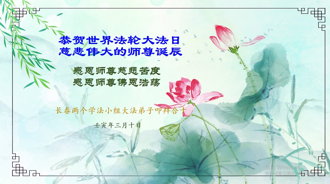 吉林省长春两个学法小组大法弟子恭贺世界法轮大法日暨师尊华诞!