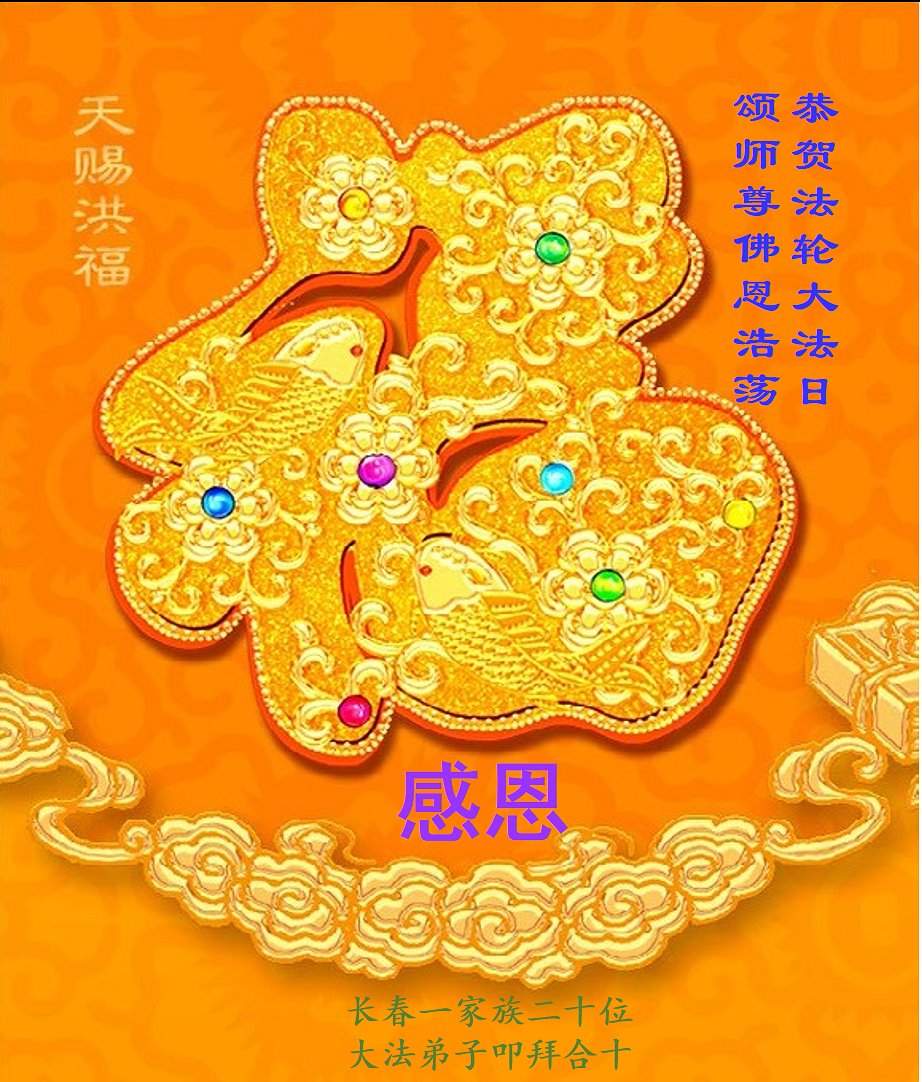 在这普天同庆、同祝、同颂的伟大时刻:弟子在这末后的末后的时间里,完成好师父赋予的历史使命,不辜负师尊的慈悲苦度,圆满随师还! 吉林省长春市大法弟子敬献 吉林省长春一大法弟子全家恭祝师尊生日快乐!