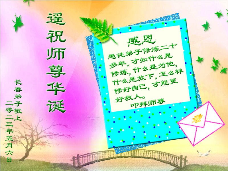 【明慧网二零二三年五月十一日】 吉林省长春市一家大法弟子恭祝慈悲伟大的师父生日快乐!