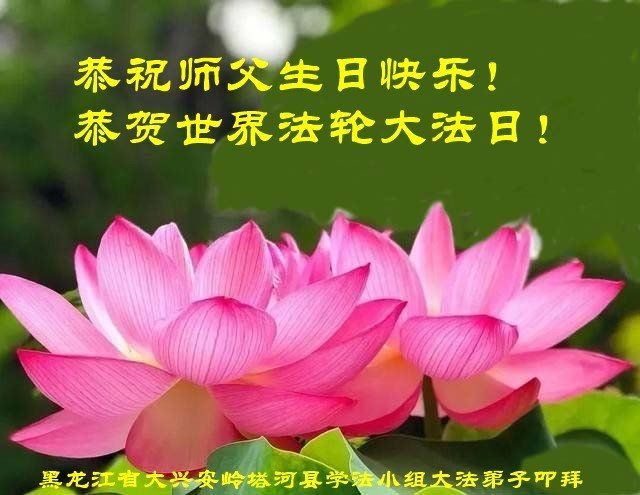 黑龙江省黑河市五大连池市沾河林业地区一家三口大法弟子恭祝师尊生日快乐!恭祝世界法轮大法日! 感恩师尊慈悲救度!师尊辛苦了! 黑龙江省建三江前進农场一大法弟子恭贺世界法轮大法日!