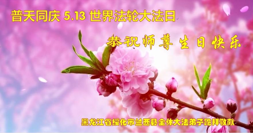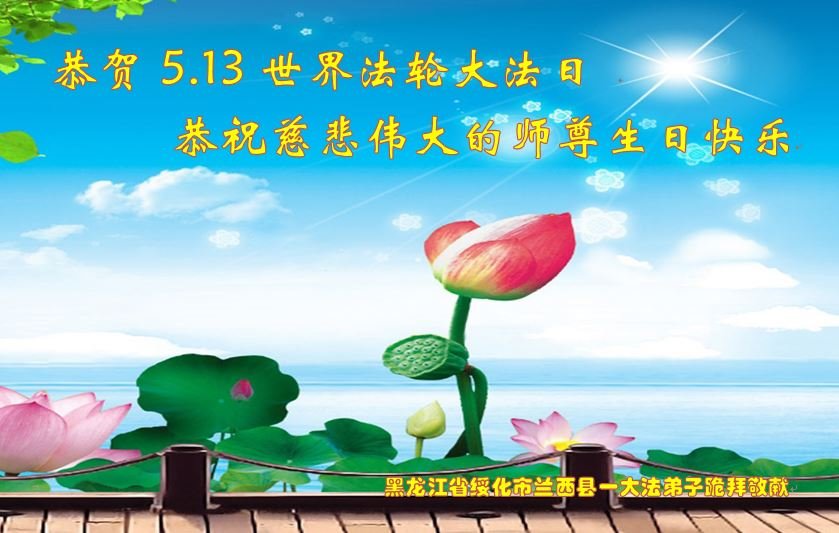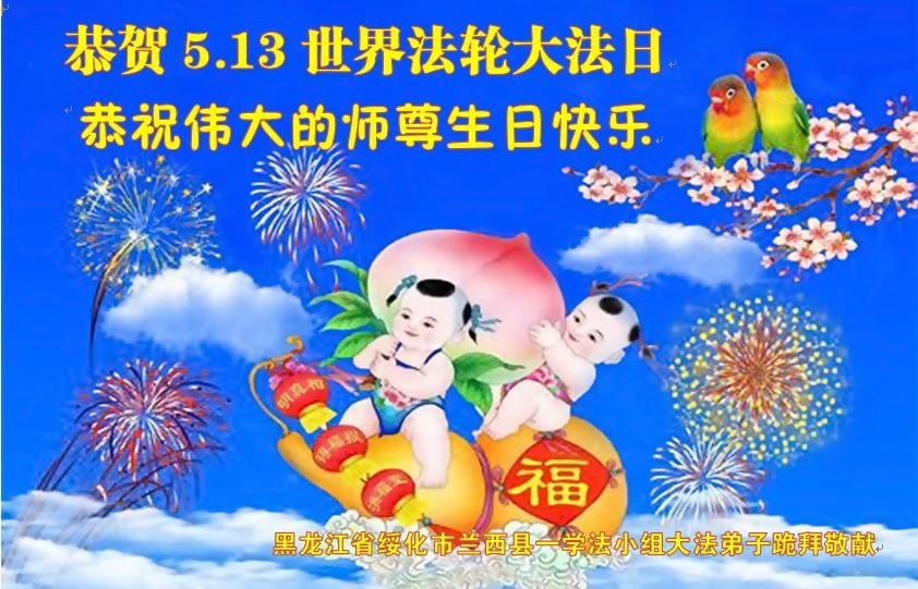 黑龙江省绥化市兰西县一学法小组大法弟子恭贺5.13世界法轮大法日!恭祝伟大的师尊生日快乐!