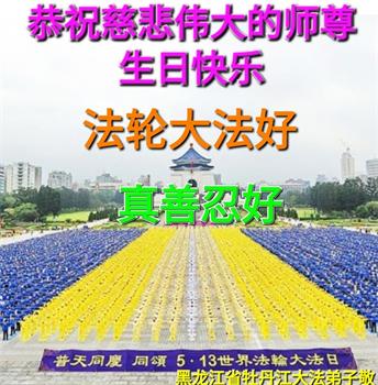 黑龙江省牡丹江市大法弟子恭祝师尊生日快乐!