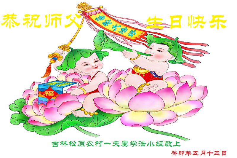 【明慧网二零二三年五月十一日】 吉林省松原市农村一夫妻学法小组大法弟子恭祝法轮大法日!