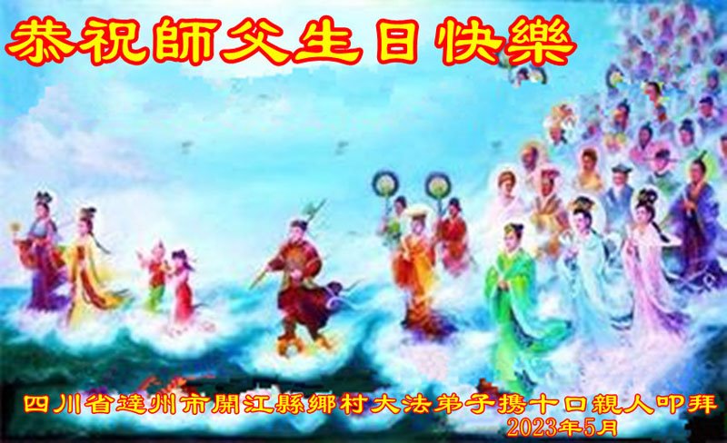 四川省达州市开江县乡村大法弟子携十口亲人恭祝师父生日快乐!
