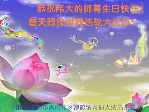 四川省成都市青白江区姚渡镇农村大法弟子恭祝伟大的师尊生日快乐!普天同庆世界法轮大法日!