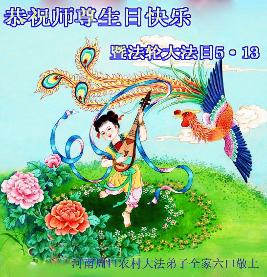 河南周口农村大法弟子全家六口恭祝师尊生日快乐!