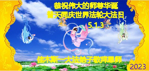 在5.13法轮大法弘传世界31周年及第二十四届世界法轮大法日即将来临之际,弟子本人并代表母亲同修及全体家人向慈悲伟大的师尊致以节日的问候,恭祝师尊华诞!师尊您为救度宇宙众生及世人付出了自己的一切!师尊您辛苦了!我们象个不懂事的孩子让您操心了! 在正法修炼所剩不多的日子里,弟子一定要修好自己,多救人,兑现誓约,圆满随师还! 中国大陆黑龙江佳木斯大法弟子叩拜恩师! 二零二三年五月七日 |