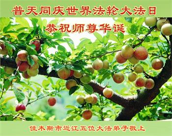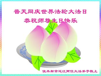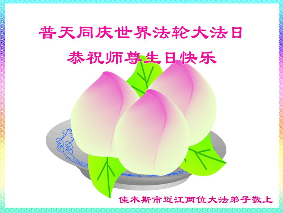 佳木斯市两位大法弟子敬上 黑龙江省佳木斯市近江八位大法弟子恭祝师尊生日快乐!普天同庆世界法轮大法日!