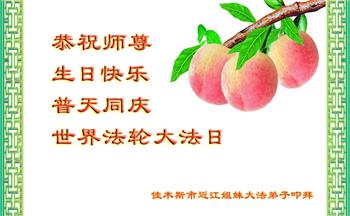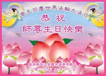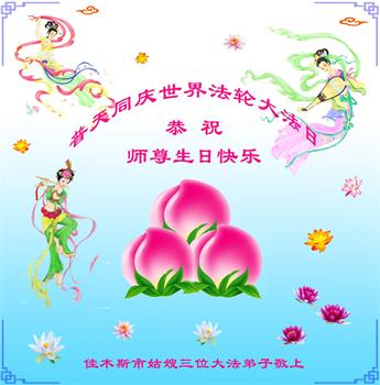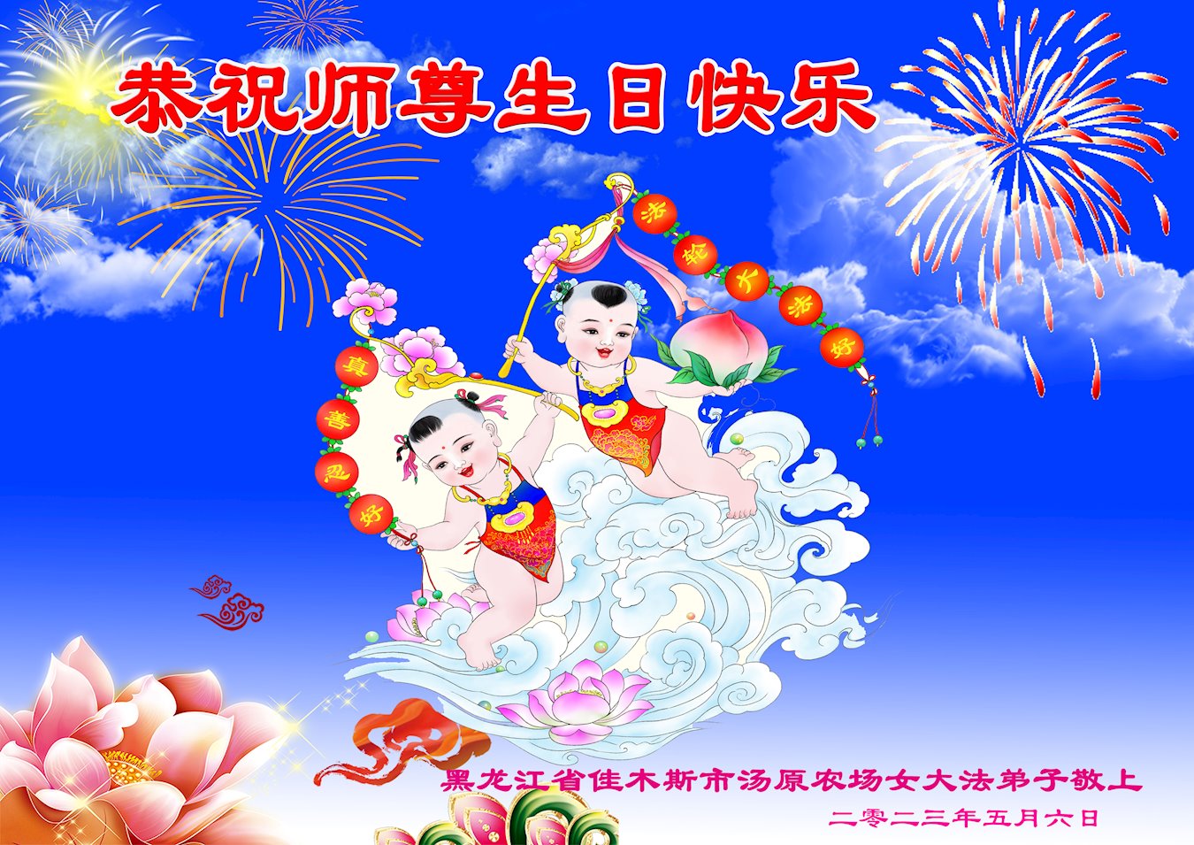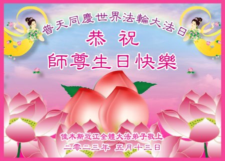 【明慧网二零二三年五月十一日】 黑龙江省佳木斯近江两位大法弟子恭祝师尊生日快乐!