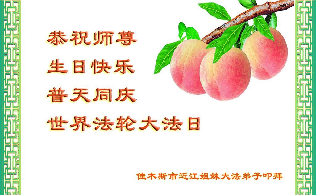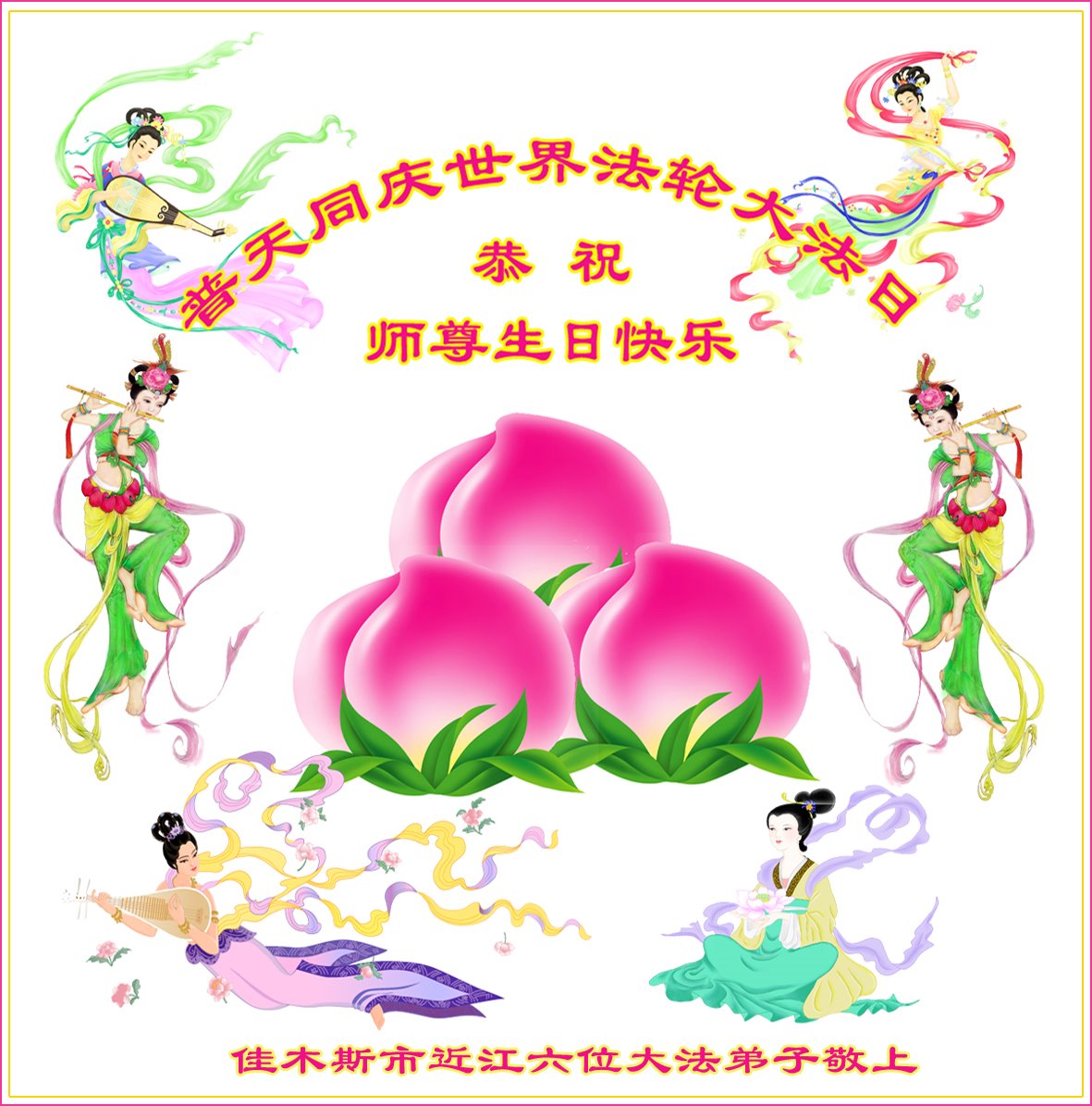 普天同庆世界法轮大法日! 佳木斯姐妹大法弟子敬上 黑龙江省佳木斯市近江六人学法组大法弟子恭祝师尊生日快乐!