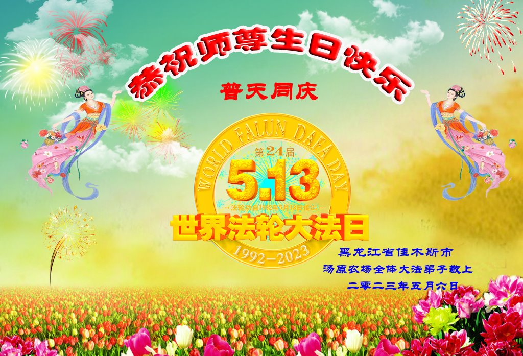黑龙江省佳木斯市大法弟子恭祝师尊生日快乐!普天同庆世界法轮大法日!