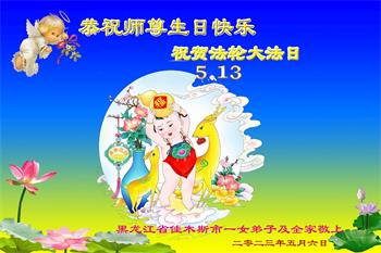 黑龙江省佳木斯一大法弟子恭祝师尊生日快乐!同祝世界法轮大法日!