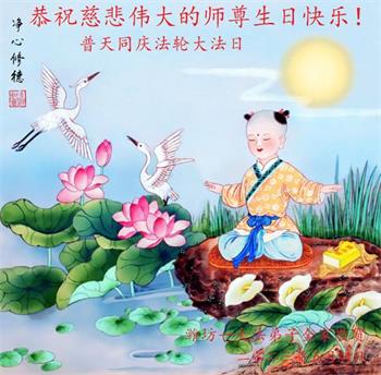 山东潍坊昌邑大法弟子感恩师父洪传大法三十一周年!祝师父生日快乐!