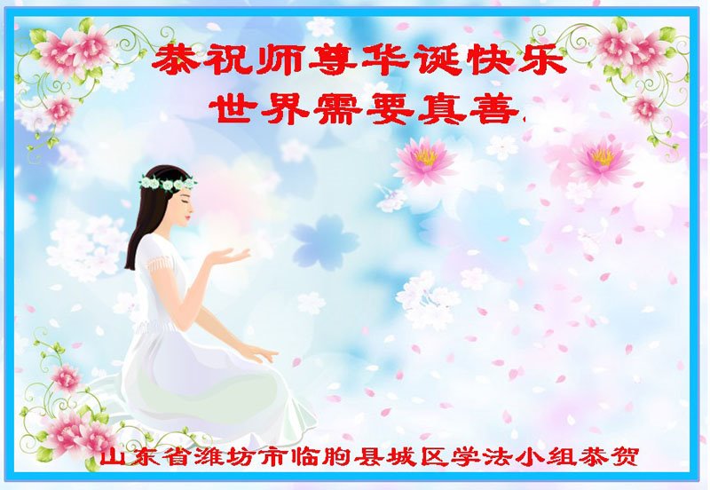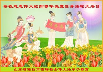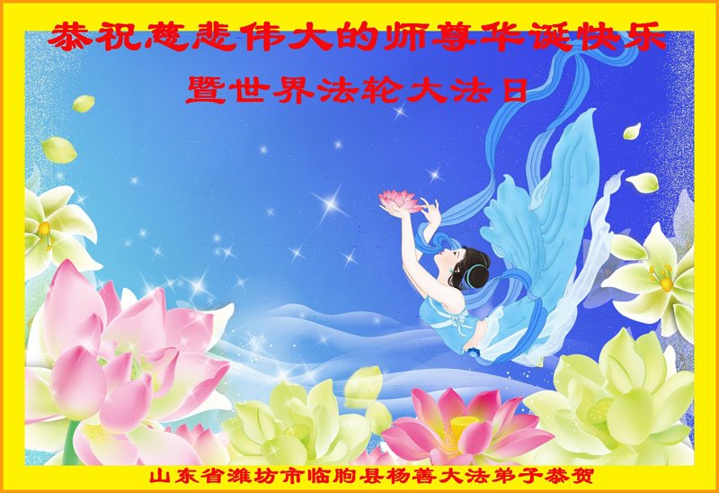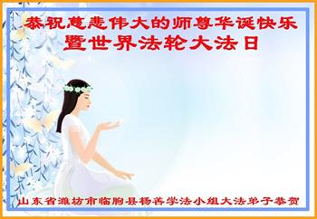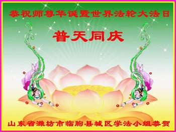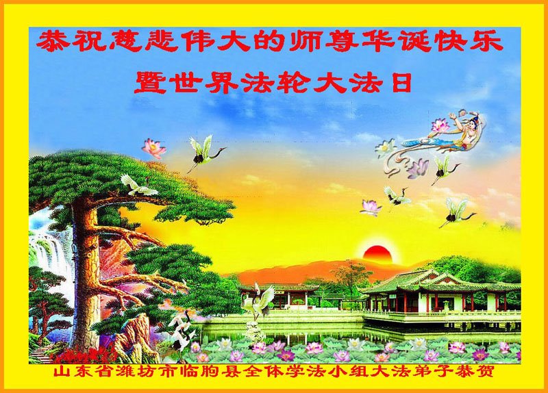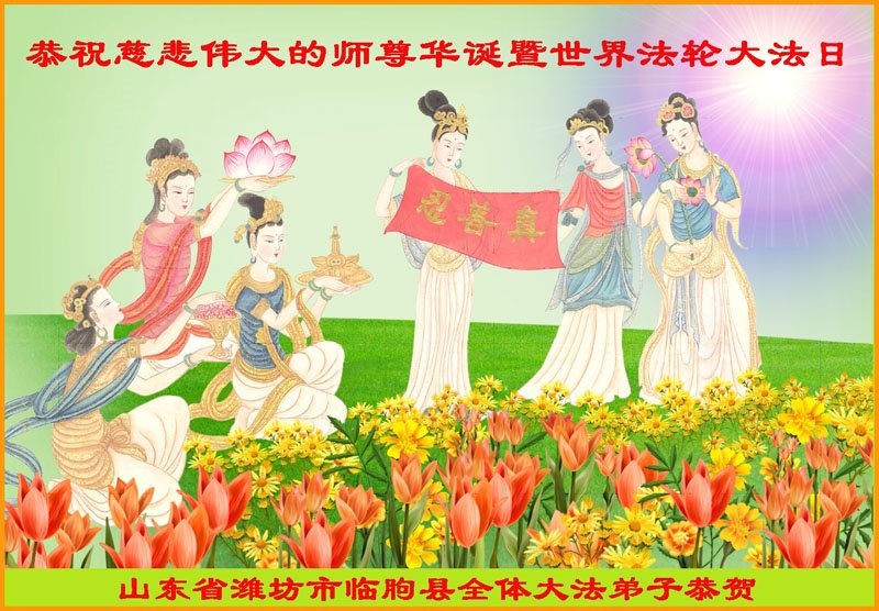 山东省潍坊市临朐县全体弟子恭祝慈悲伟大的师尊华诞暨世界法轮大法日!