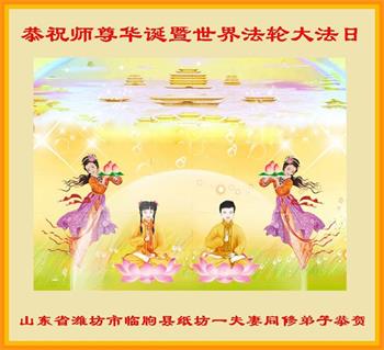山东省潍坊市临朐县纸坊一夫妻大法弟子恭祝师尊华诞暨世界法轮大法日!