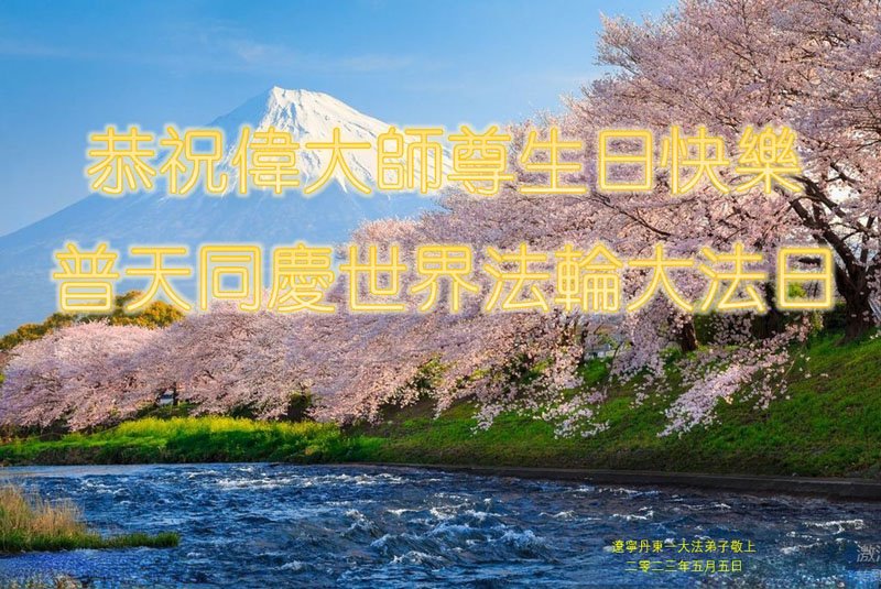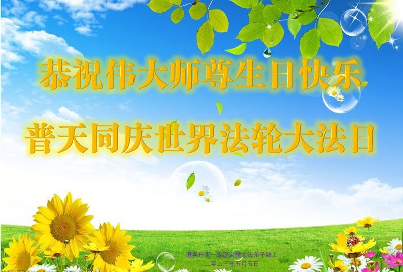 2023年五·一三世界法轮大法日即将来临,在这美好的日子,弟子感恩师尊的慈悲救度,师尊给予弟子太多太多,弟子只有坚定实修,学好法,做好三件事来回报师恩,圆满随师还。感恩叩拜师尊! 合十 辽宁丹东一大法弟子恭祝师尊生日快乐!