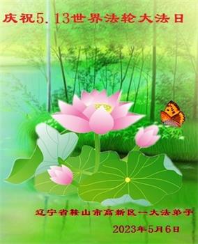 【明慧网二零二三年五月十一日】 辽宁抚顺市大法弟子母女二人恭祝师尊华诞!庆贺世界法轮大法日!
