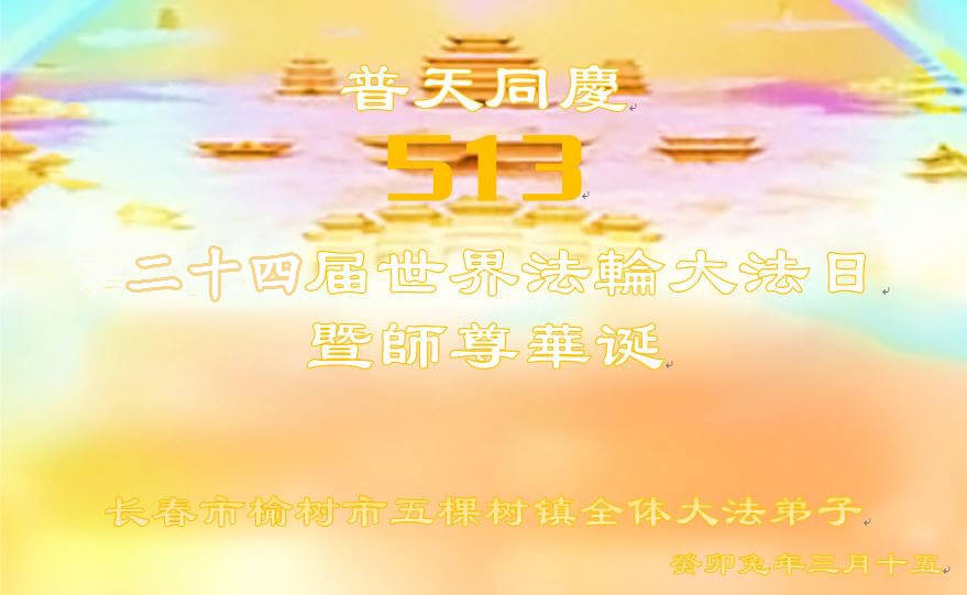 普天同庆法轮大法日!恭祝师父生日快乐! 长春和平大路大法弟子 吉林省长春市榆树市五棵树全体大法弟子恭祝师尊生日快乐!