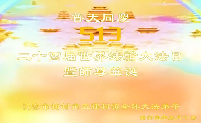 庆贺第二十四届世界法轮大法日! 吉林省长春市榆树市五棵树镇全体大法弟子庆贺第二十四届世界法轮大法日!恭祝师尊生日快乐!