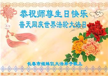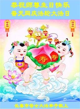 吉林省长春老年女大法弟子恭贺师尊华诞暨法轮大法日!