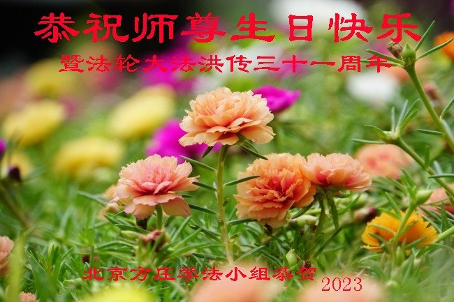 恭祝师尊生日快乐!叩拜师父! 北京大兴一老年大法弟子敬上 2023年5月 北京方庄学法小组大法弟子恭祝师尊生日快乐暨法轮大法洪传三十一周年!
