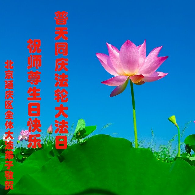 师尊您好!我们一定跟着您,继续做好三件事。永远跟着您,不回头、不停留,向内找的法宝、真、善、忍永记心头。 北京延庆大法弟子恭祝伟大慈悲的师尊生日快乐!