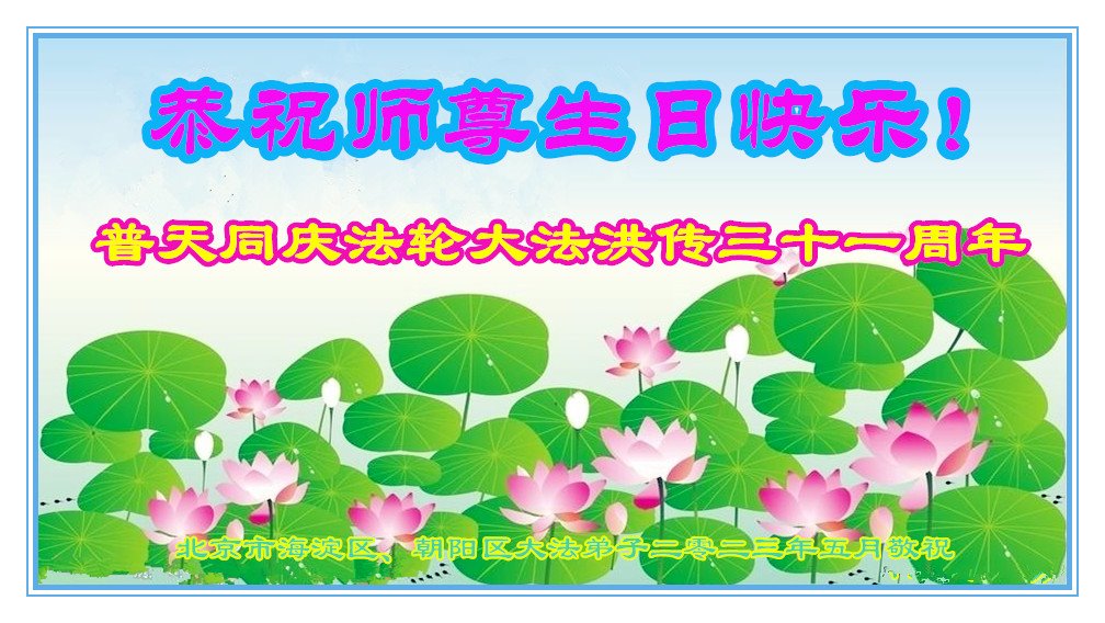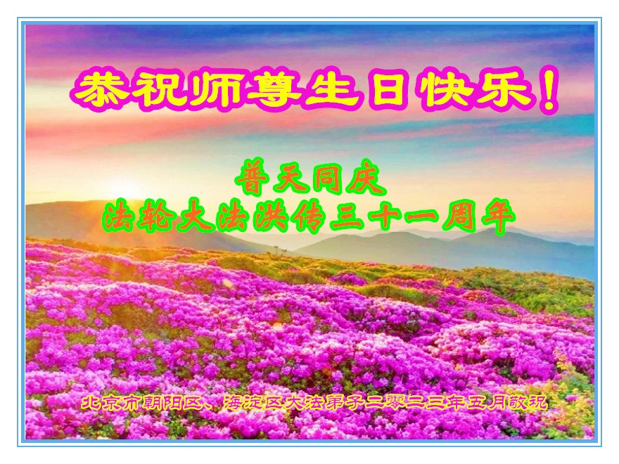 北京市朝阳区、海淀区大法弟子恭祝师尊生日快乐!普天同庆法轮大法洪传三十一周年!