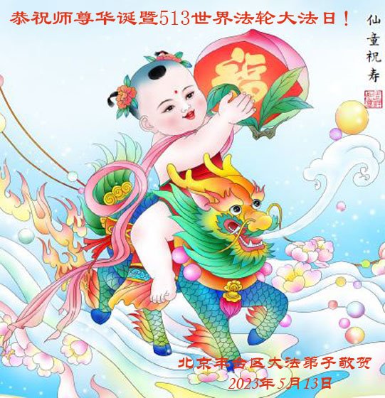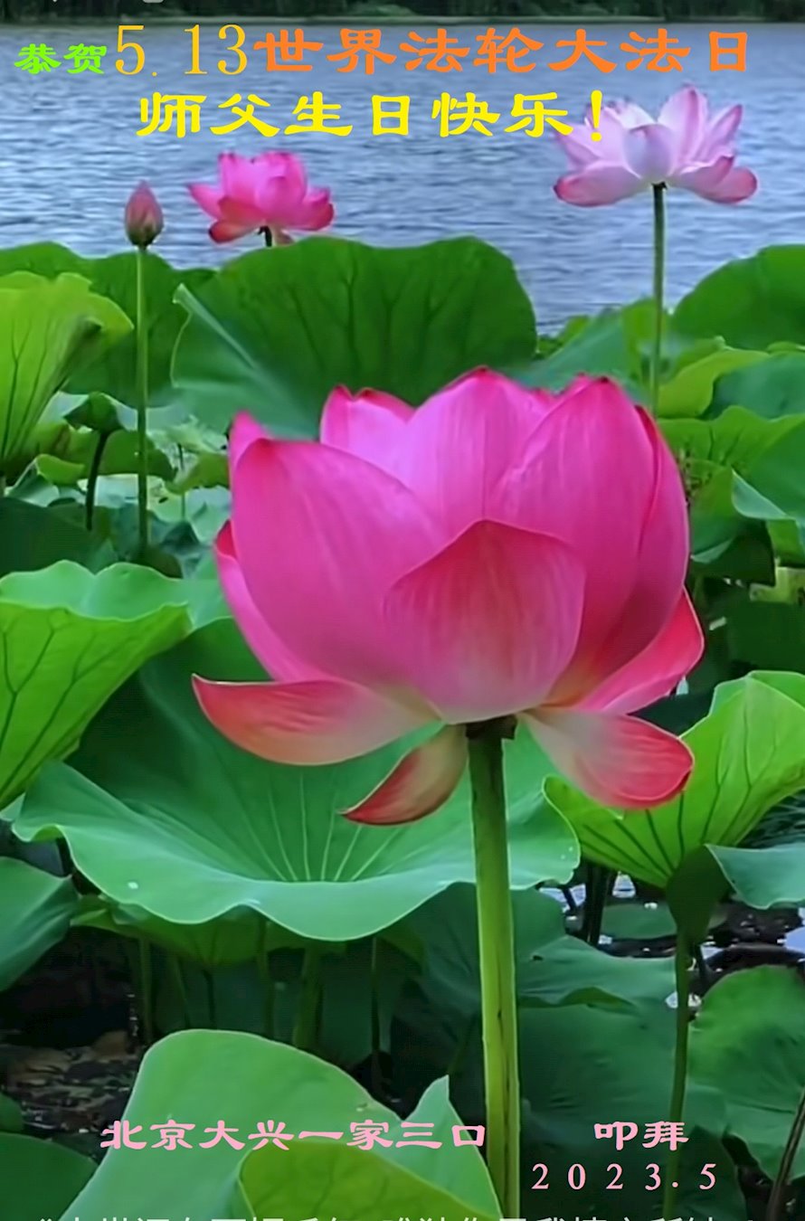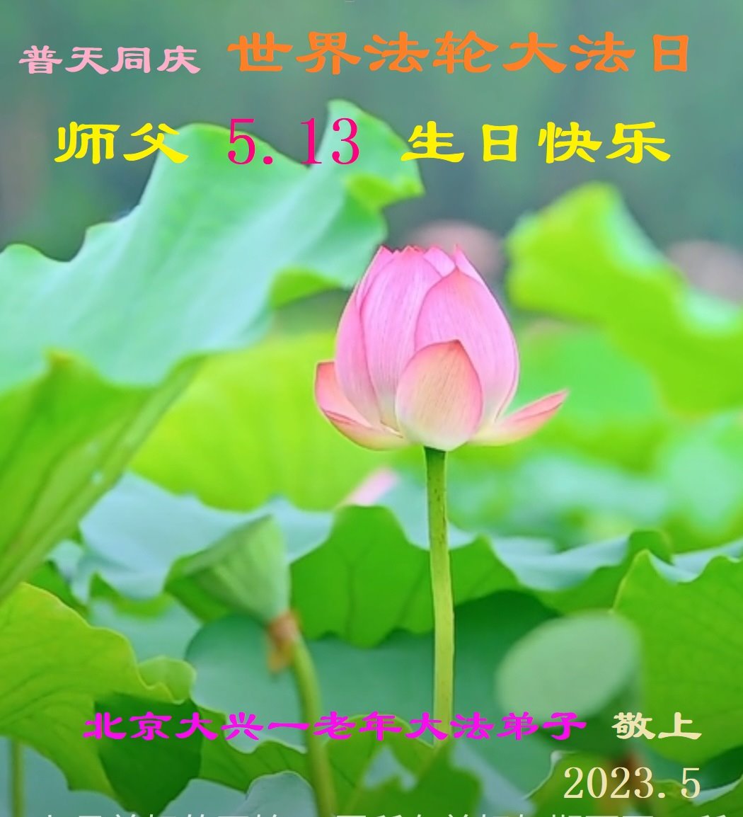 祝师尊生日快乐!叩谢师尊救度之恩! 北京大兴一家三口敬上 2023年5月 北京大兴一老年大法弟子恭祝师尊生日快乐暨世界法轮大法日!