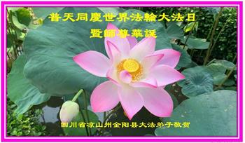 四川省凉山州金阳县大法弟子恭祝师尊生日快乐!