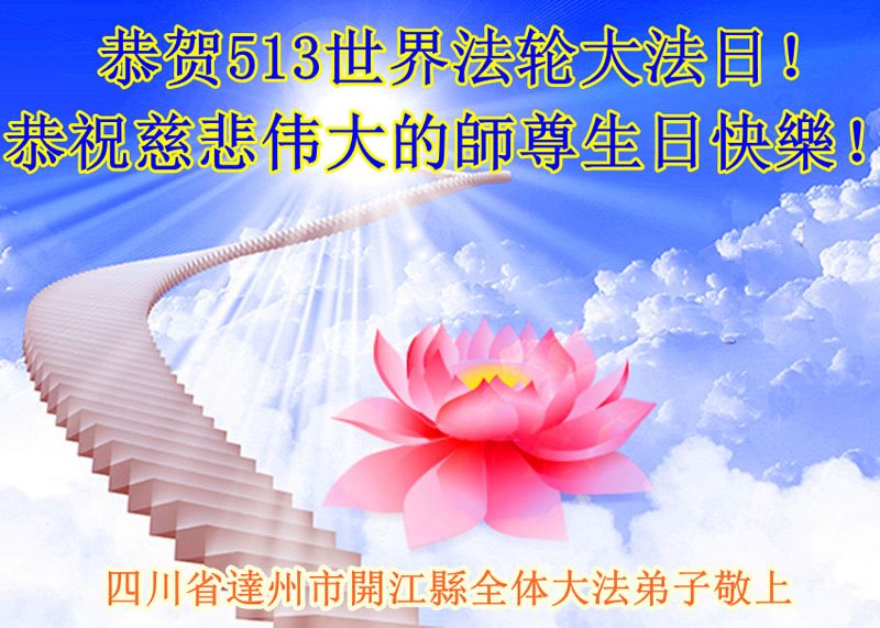 四川省达州市开江县全体大法弟子恭祝慈悲伟大的师尊生日快乐!