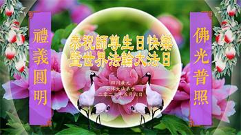 师尊洪恩浩荡,感恩师尊救度,把我们托起,能随师回家。 四川乐山市中区大法弟子学法小组及全体家人恭祝慈悲伟大的师父生日快乐!恭祝世界法轮大法日!