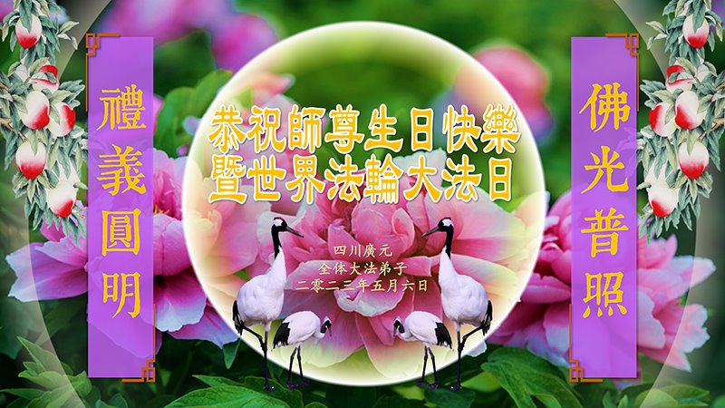 四川广元全体大法弟子恭祝师尊生日快乐!恭贺世界法轮大法日!