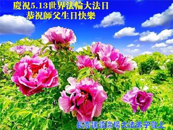 吉林省长春隆都世界湾大法弟子庆祝五·一三世界法轮大法日!恭祝师父生日快乐!