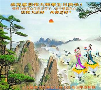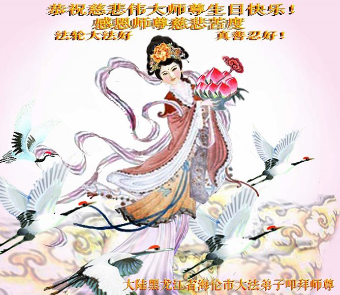 我们谨遵师尊教诲,修好自己,做好三件事,救度众生,不辜负师尊的慈悲苦度,圆满随师还。 黑龙江省夫妻大法弟子恭贺师尊华诞暨世界法轮大法日!