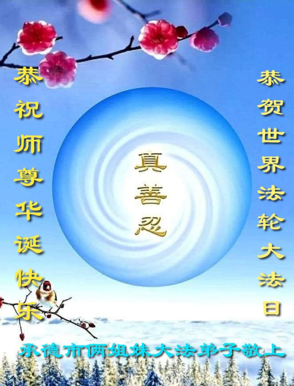 河北承德俩姐妹大法弟子恭祝慈悲伟大的师尊生日快乐!恭贺世界法轮大法日!