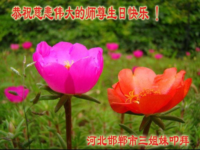 【明慧网二零二三年五月十一日】 河北邯郸三姐妹恭祝师父生日快乐!
