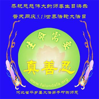 河北衡水安平县一大法弟子恭祝师尊生日快乐!庆祝世界法轮大法日!谢谢师父!