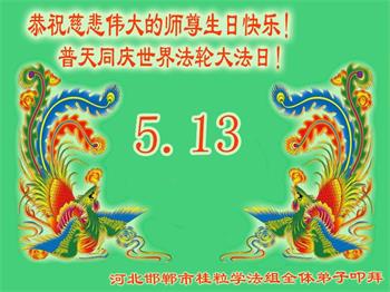 河北邯郸永年大法弟子恭祝慈悲伟大的师尊生日快乐!普天同庆法轮大法日!