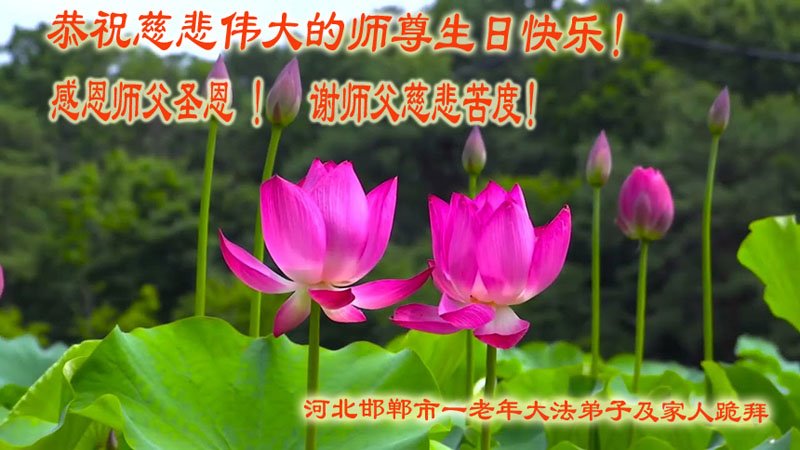 河北邯郸一老年大法弟子及家人恭祝师父生日快乐!