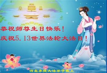 感恩师尊在二十六年的修炼路上护我们前行,在救度众生中给我们勇气智慧,在消业提高中替我们承受,弟子唯有精進实修,敬谢师恩! 河北邢台大法弟子恭祝师尊生日快乐!恭贺世界法轮大法日!