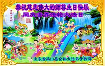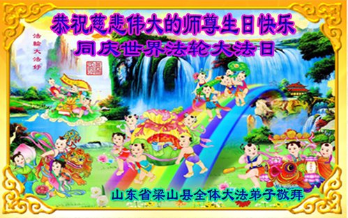 山东省梁山县全体大法弟子恭祝师尊生日快乐!