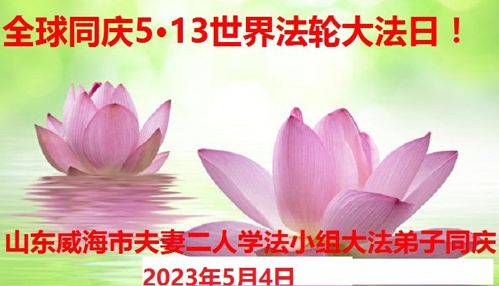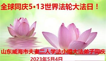 山东威海市夫妻大法弟子同庆世界法轮大法日!